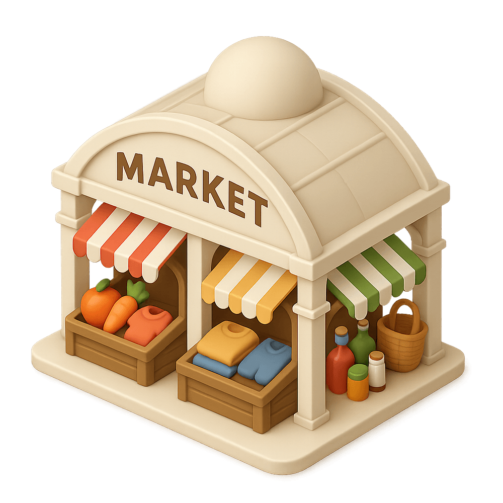 A covered market is a public marketplace housed within a roofed structure, offering a variety of goods such as food, crafts, and clothing from multiple vendors. It serves as a social and commercial hub in many cities and towns.