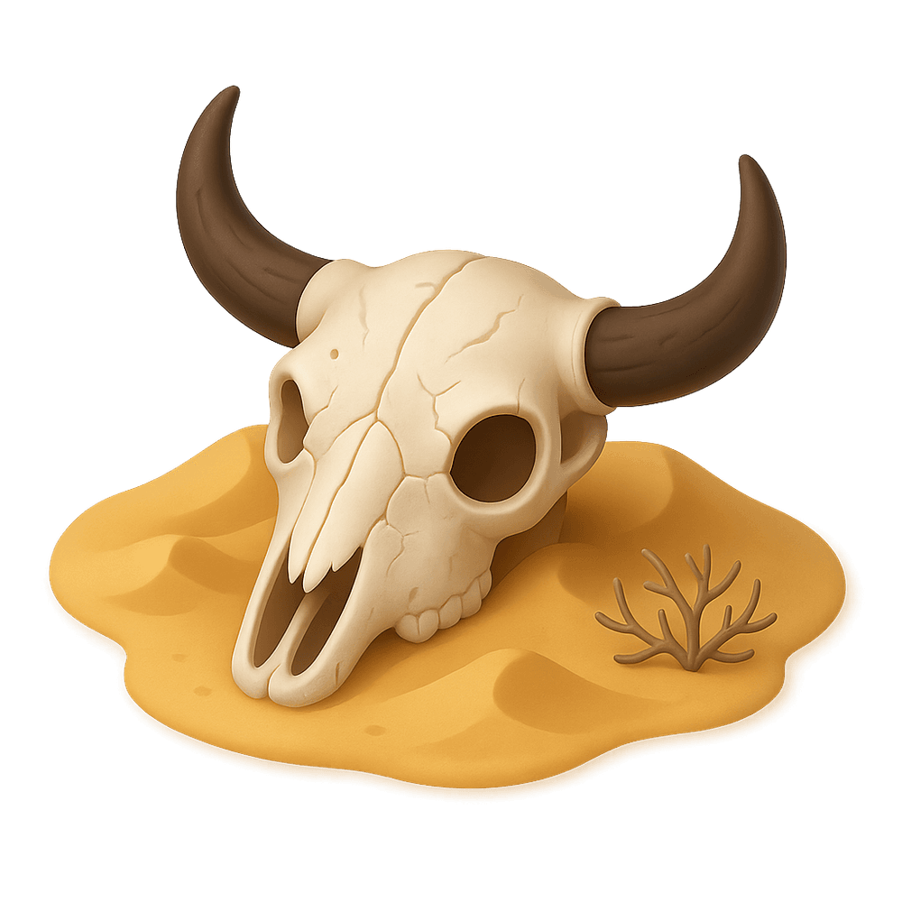 A cow skull is the bony structure of a cow's head, often found in natural settings or used as a decorative object. It symbolizes the rugged outdoors and is commonly associated with the American West and desert landscapes.