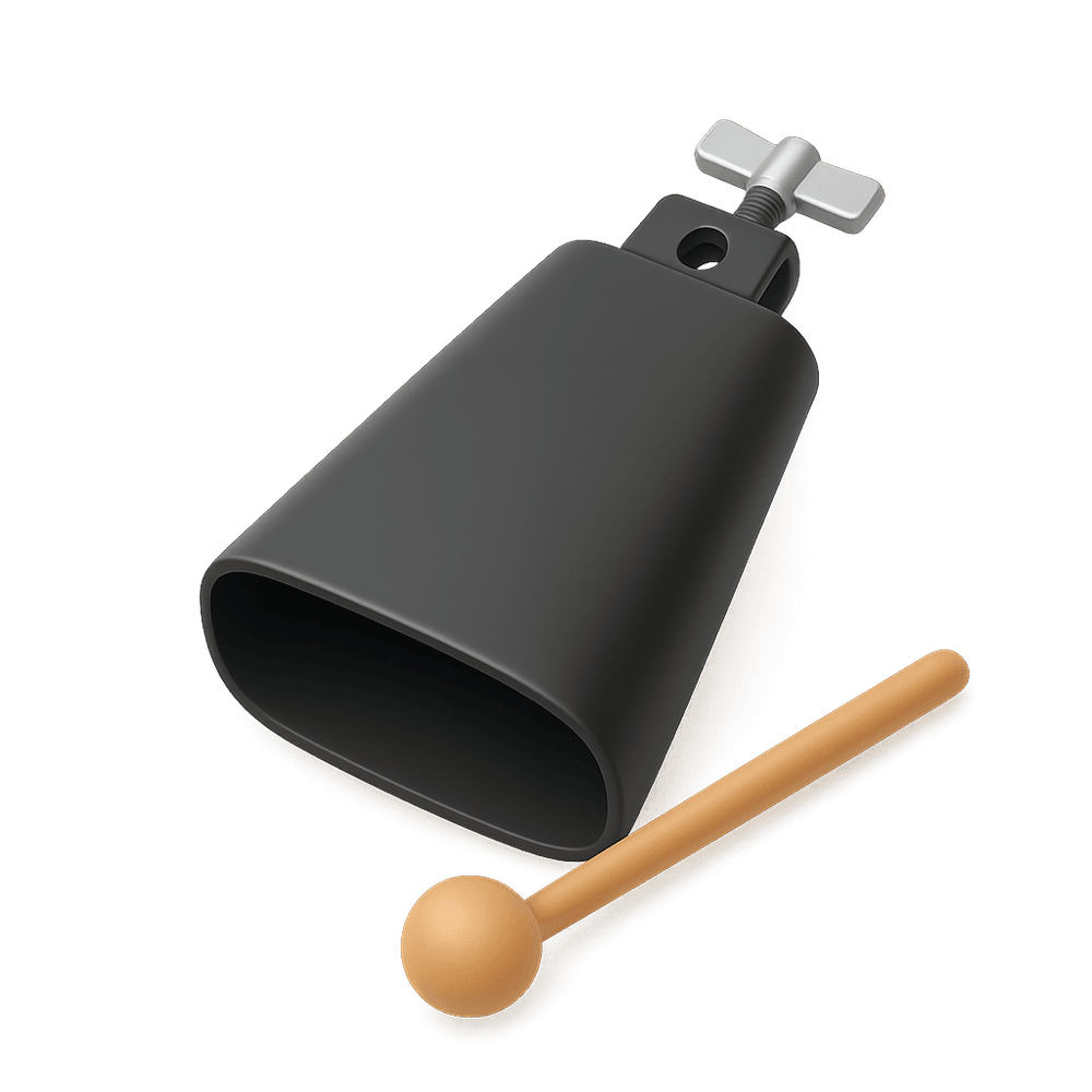 A cowbell is a handheld percussion instrument, typically made of metal, that produces a distinctive ringing sound when struck. Commonly used in music ensembles, especially in Latin, rock, and folk genres, it adds rhythm and energy to performances.