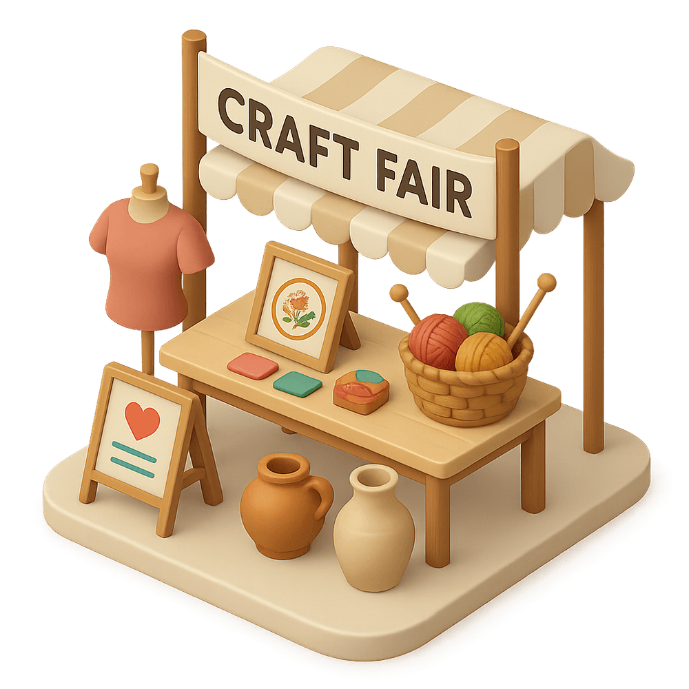 A craft fair is a public event where artisans and crafters display and sell handmade goods, often featuring local art, food, and entertainment. It provides a social and recreational experience for attendees.