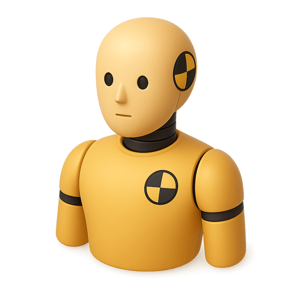 A crash test dummy is a human-like model used in vehicle safety testing to simulate the effects of collisions on the human body. It helps engineers assess injury risks and improve safety features in cars and other vehicles.