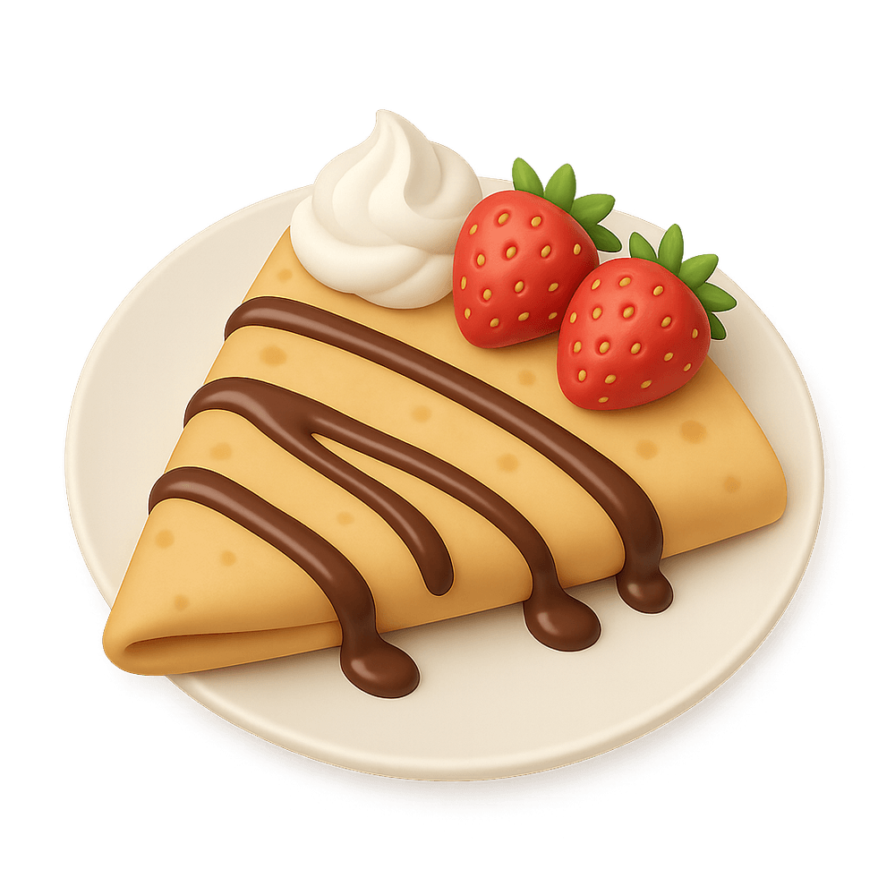 A crepe is a thin, delicate pancake of French origin, often served with sweet or savory fillings. Popular as a breakfast, dessert, or snack, crepes are enjoyed worldwide for their versatility and light texture.