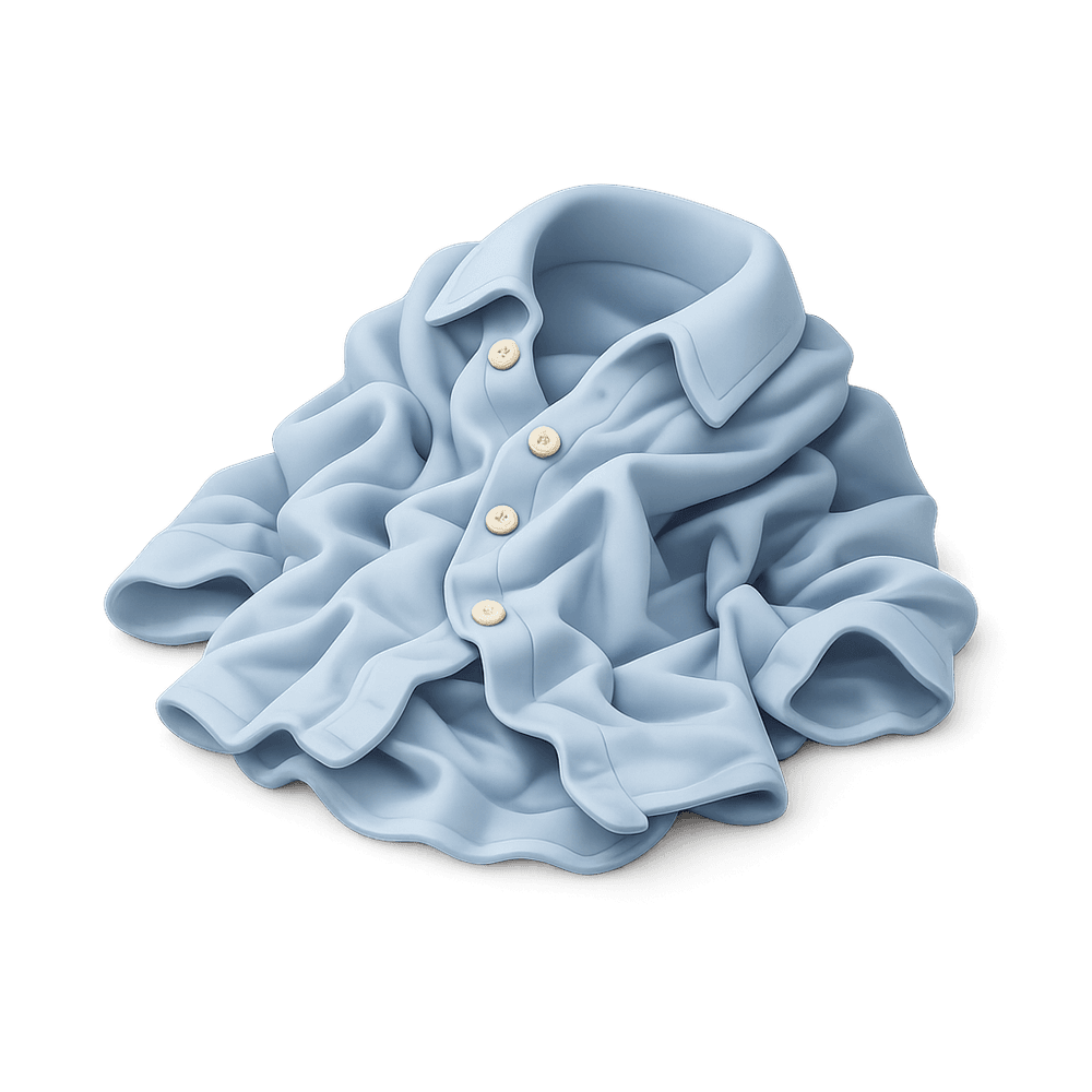 A crumpled shirt is a piece of clothing that has been wrinkled or not properly folded, often appearing messy or unkempt. It is a common sight in everyday life, especially when laundry is not immediately put away or ironed.