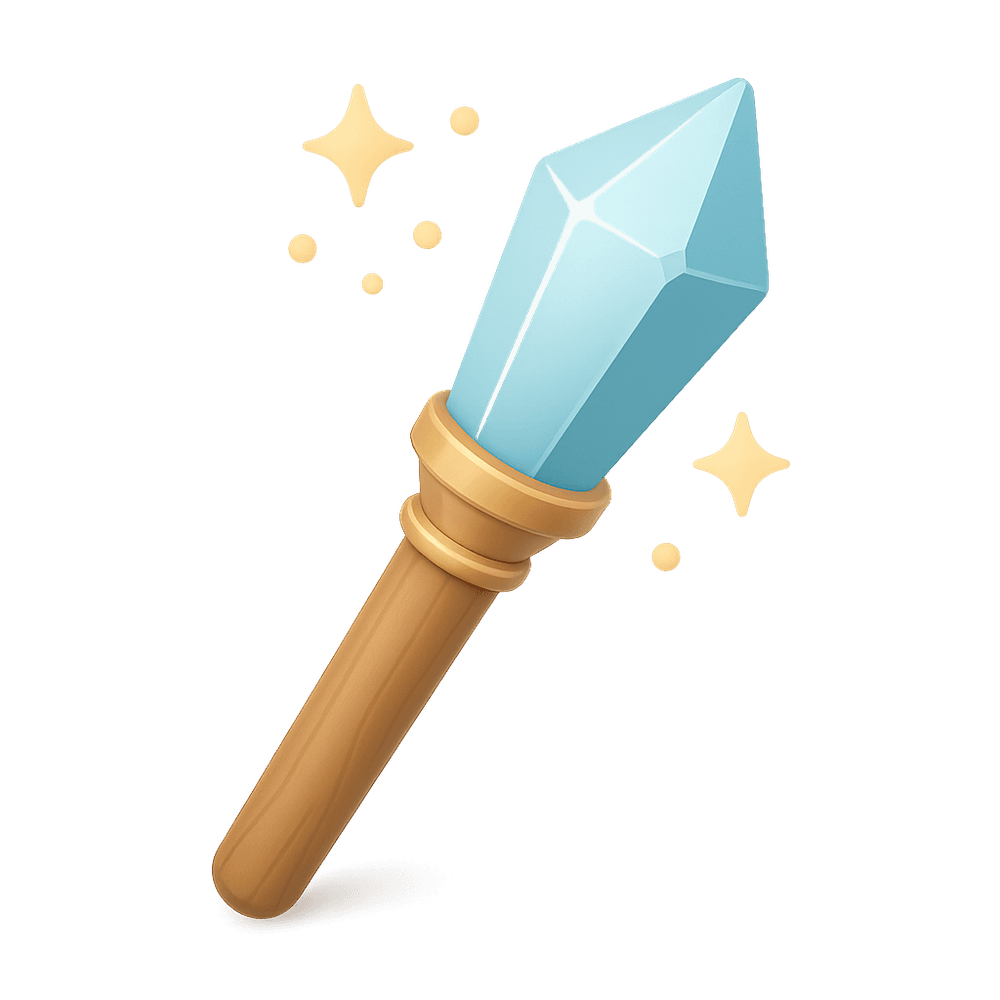 A Crystal Wand is a slender, magical rod crafted from shimmering crystal, often used by wizards and sorcerers to channel and amplify mystical energies. It is a classic tool in fantasy worlds, symbolizing power, imagination, and the art of spellcasting.