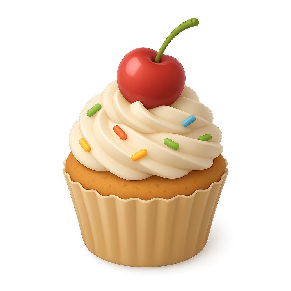 A cupcake is a small, sweet baked treat, typically consisting of a soft cake base topped with frosting and sometimes sprinkles or decorations. It is often enjoyed as a dessert or snack and is popular at celebrations and parties.