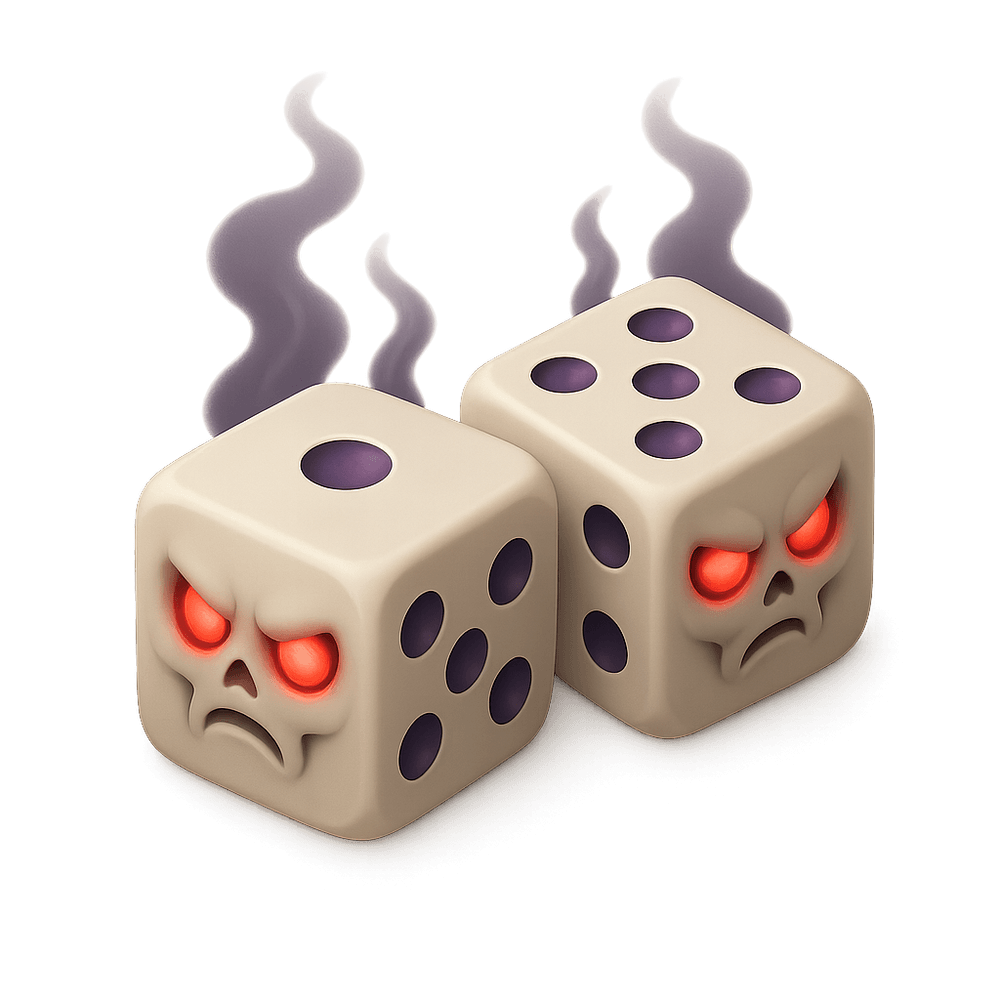A pair of mysterious dice said to bring misfortune or unpredictable magic to those who roll them. Often used in fantasy games or stories as a tool of fate, risk, or dark enchantment.