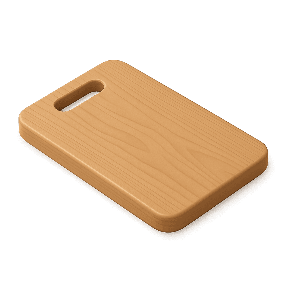 A flat, durable surface used in kitchens for safely cutting and preparing food items. Cutting boards protect countertops and help maintain knife sharpness.