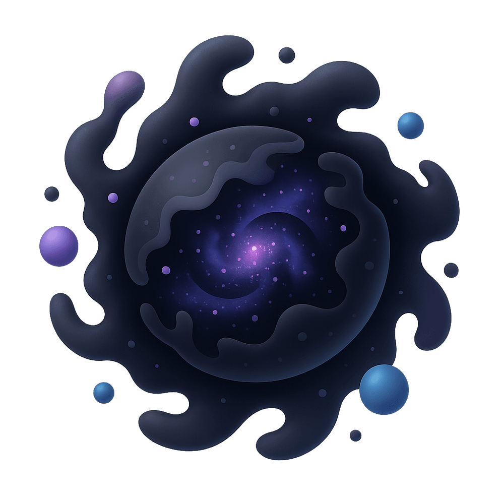 Dark Matter is a mysterious and invisible substance that makes up most of the universe's mass, yet does not emit or interact with electromagnetic radiation like ordinary matter. Its presence is inferred from its gravitational effects on galaxies and galaxy clusters.