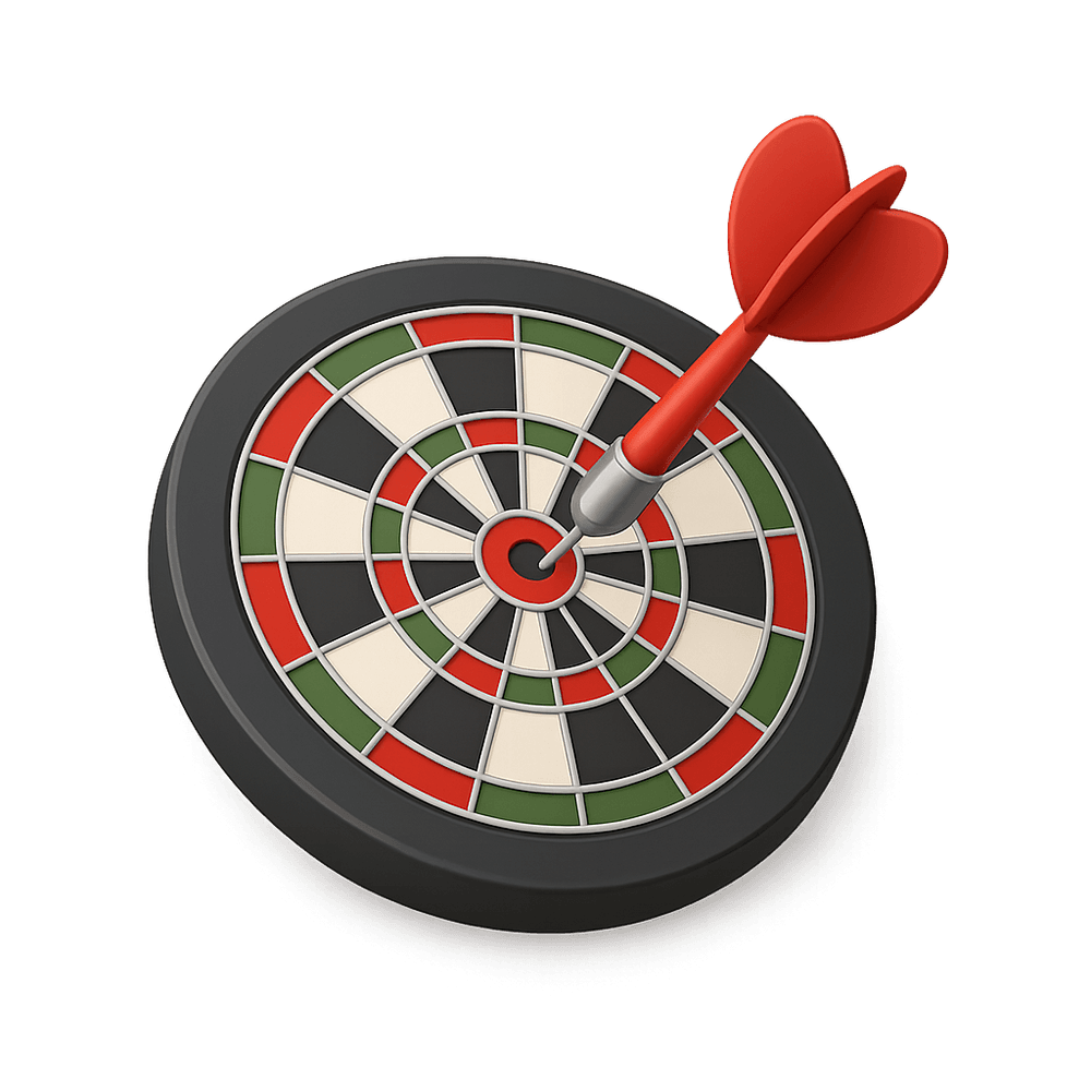 A dartboard is a circular board used as the target in the game of darts, where players throw small, pointed missiles to score points based on where they land. Commonly found in pubs, game rooms, and recreational spaces, it is a popular item for social gatherings and friendly competition.