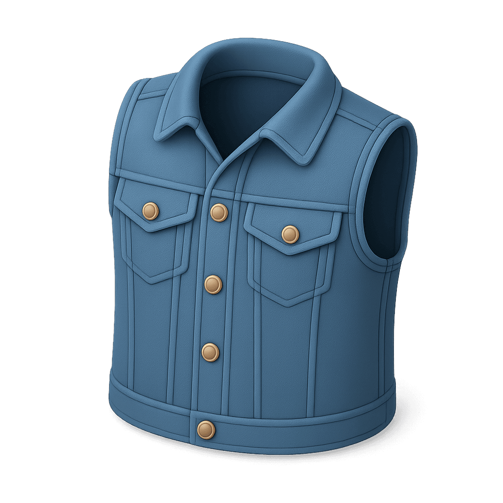 A sleeveless jacket made from denim fabric, often worn as a casual outer layer. Popular in both vintage and modern fashion, denim vests add a rugged, stylish touch to any outfit.