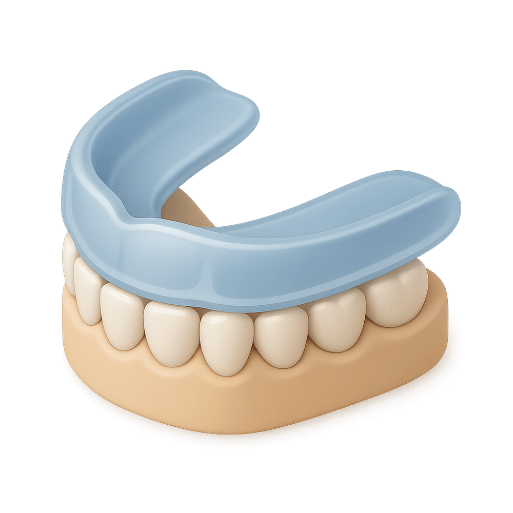 A dental night guard is a custom-fitted oral appliance worn during sleep to protect teeth from grinding or clenching, helping to prevent jaw pain and tooth damage.