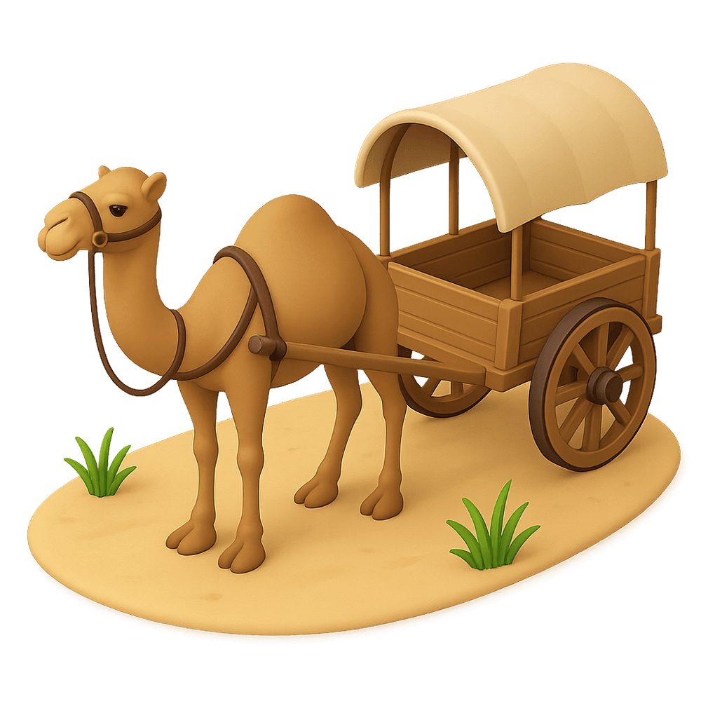 A traditional, animal-drawn cart designed for transporting goods and people across arid desert landscapes, typically pulled by camels. Used for travel and trade in desert regions.