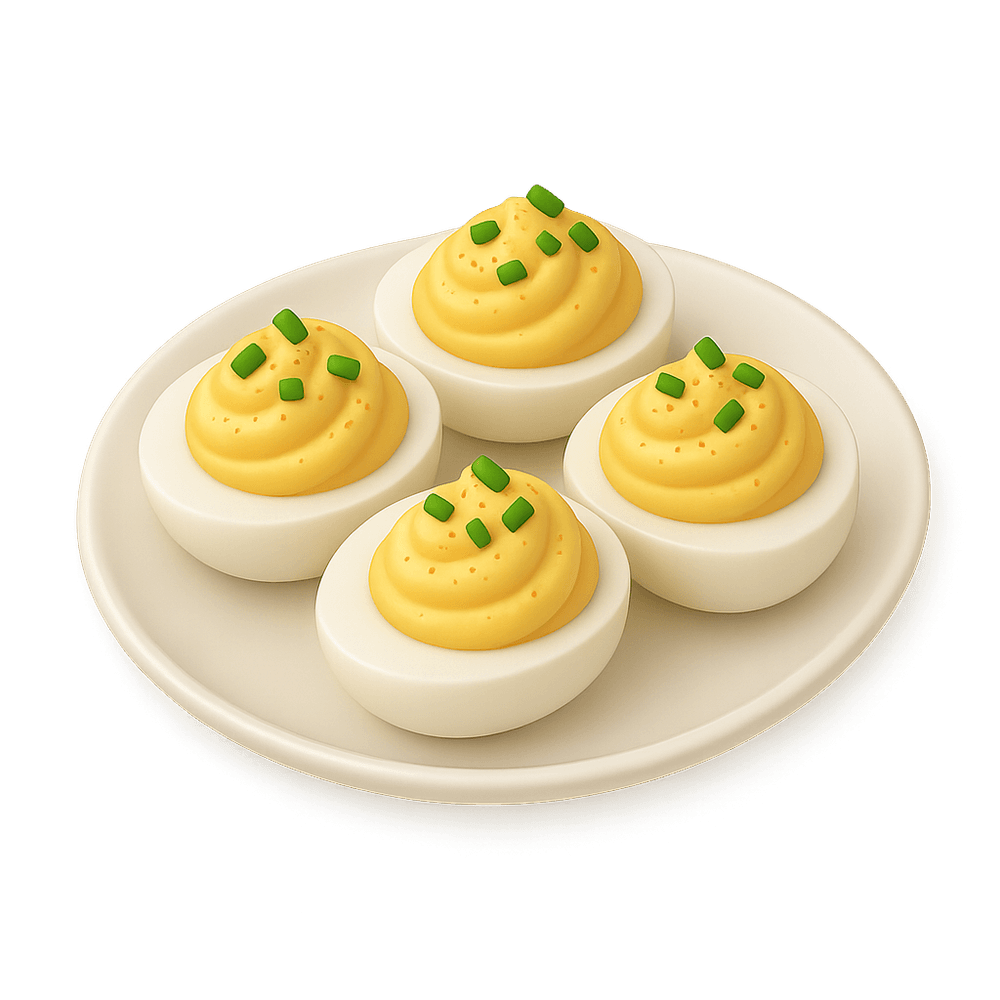 Deviled eggs are hard-boiled eggs that are halved, with the yolks mixed with mayonnaise, mustard, and seasonings, then piped back into the whites. They are a classic appetizer or side dish, popular at parties and gatherings.