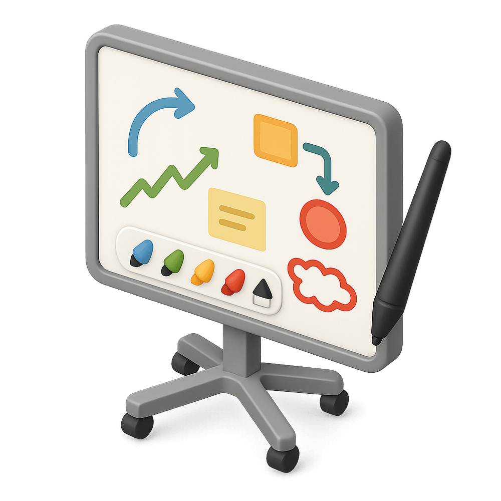 A digital whiteboard is an interactive display that allows users to write, draw, and collaborate in real time using digital tools. Commonly used in classrooms, offices, and remote meetings, it enhances presentations and teamwork by enabling dynamic content sharing and annotation.