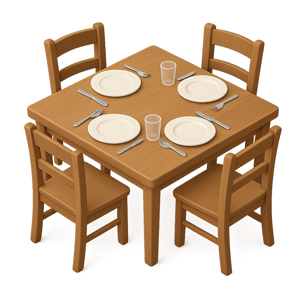 A dining table is a piece of furniture designed for people to gather around and share meals. It serves as a central surface in dining rooms or kitchens, supporting eating, socializing, and family activities.