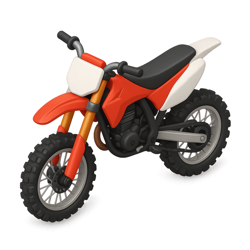 A dirtbike is a lightweight motorcycle designed for off-road riding on rough terrains such as dirt trails, motocross tracks, and rugged landscapes. It features knobby tires, high ground clearance, and a powerful suspension system for handling jumps and obstacles.
