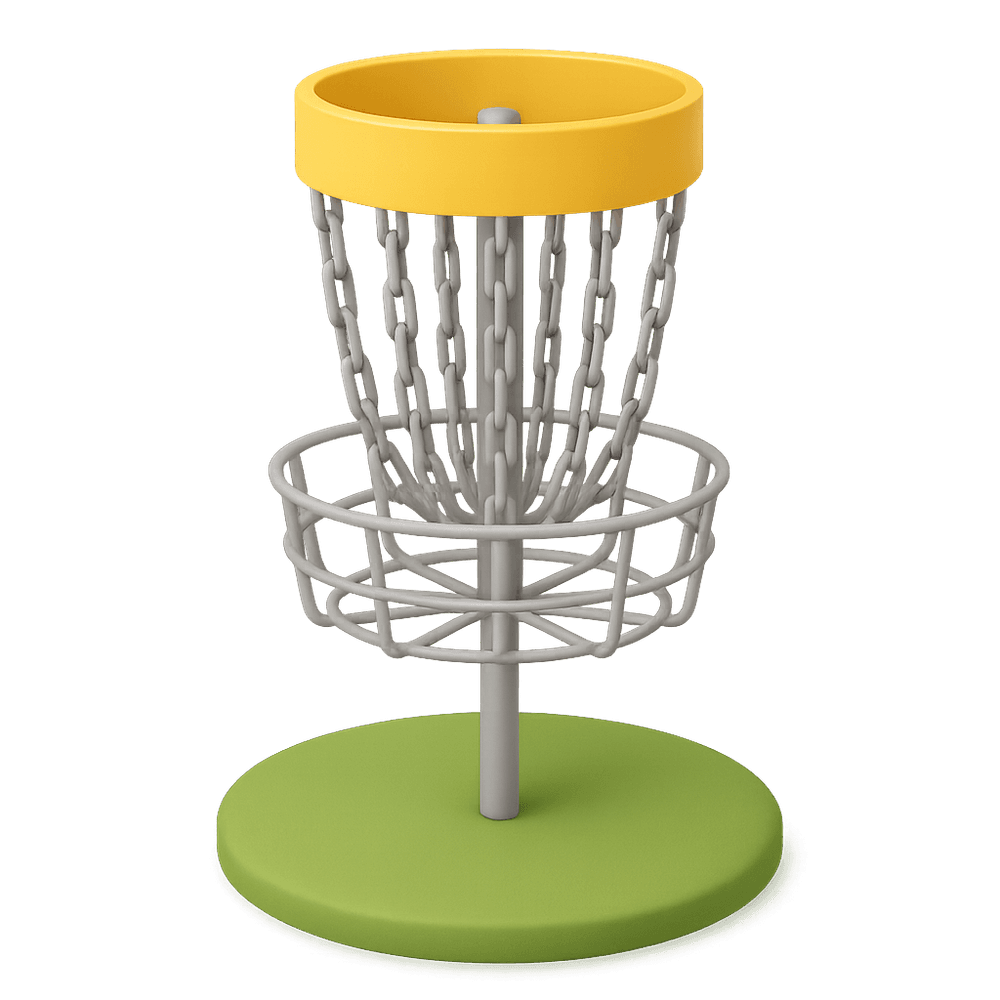 A disc golf basket is a metal target with hanging chains and a basket, used to catch flying discs in the sport of disc golf. It is a key piece of equipment for outdoor recreation and competitive play.