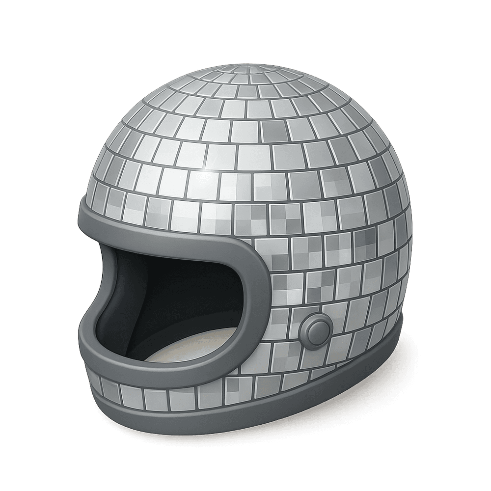 A Disco Helmet is a shiny, reflective helmet designed to resemble a disco ball, often worn at parties, dance events, or performances to create a fun and vibrant atmosphere. It combines the protective shape of a helmet with the sparkling, mirrored surface of classic disco decor, making it a popular costume accessory for entertainment and leisure activities.