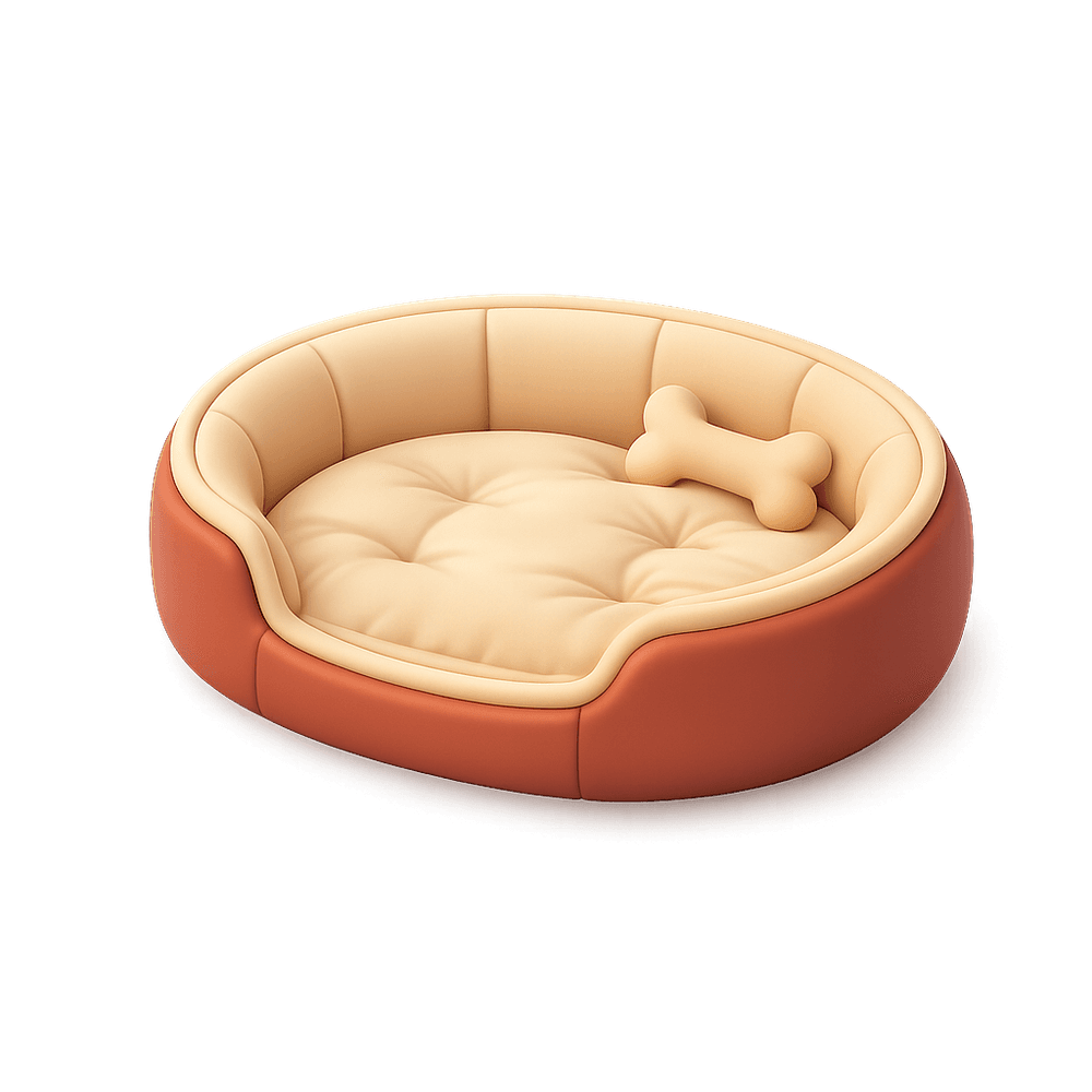 A cushioned and comfortable resting place designed specifically for dogs, providing them with a cozy spot to sleep and relax in the home.