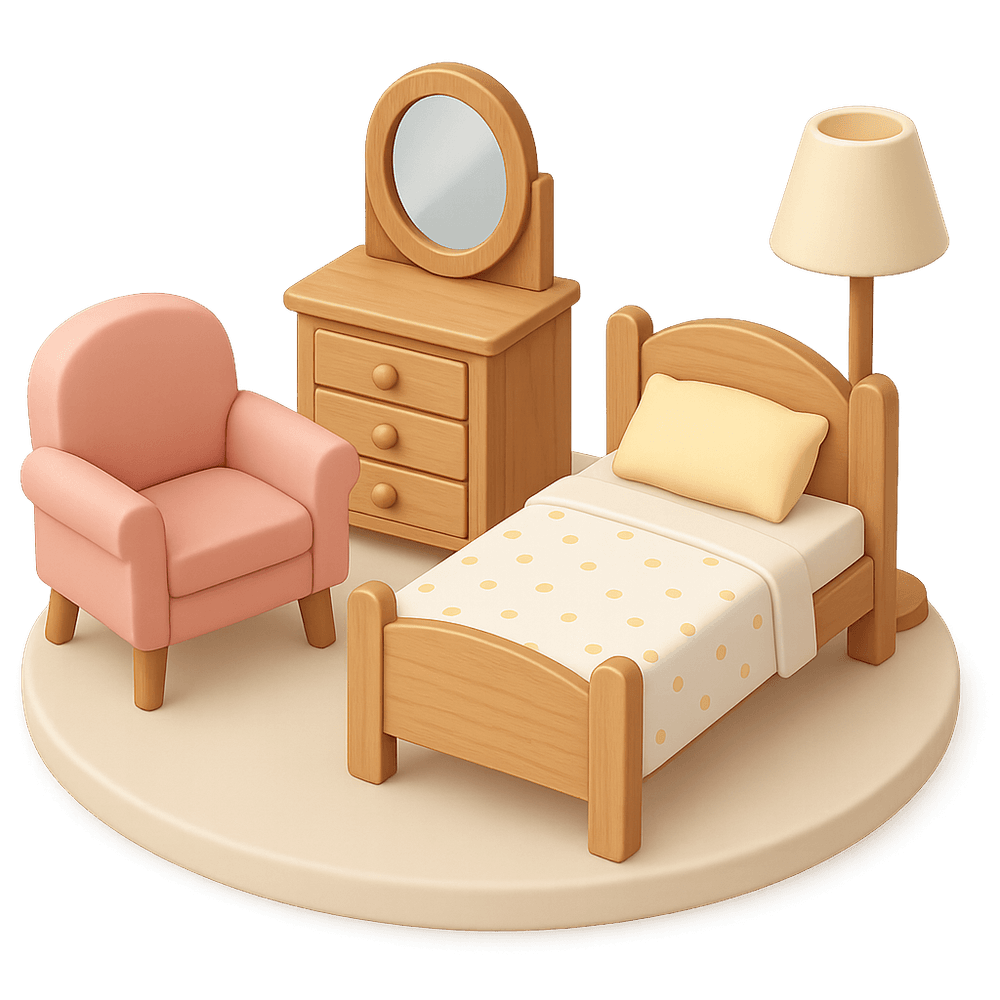 Miniature furniture pieces designed for use in dollhouses, often collected and arranged as a hobby. These items replicate real-life furniture in small scale and are popular among hobbyists and collectors.