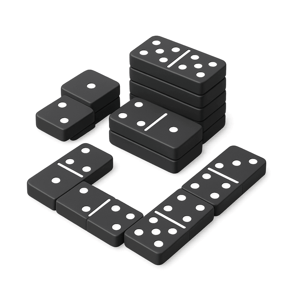 A set of rectangular tiles used for playing the classic game of dominoes. Each tile is divided into two squares, each marked with a number of spots or left blank. Domino sets are used for a variety of games and are popular for both casual play and competitive matches.