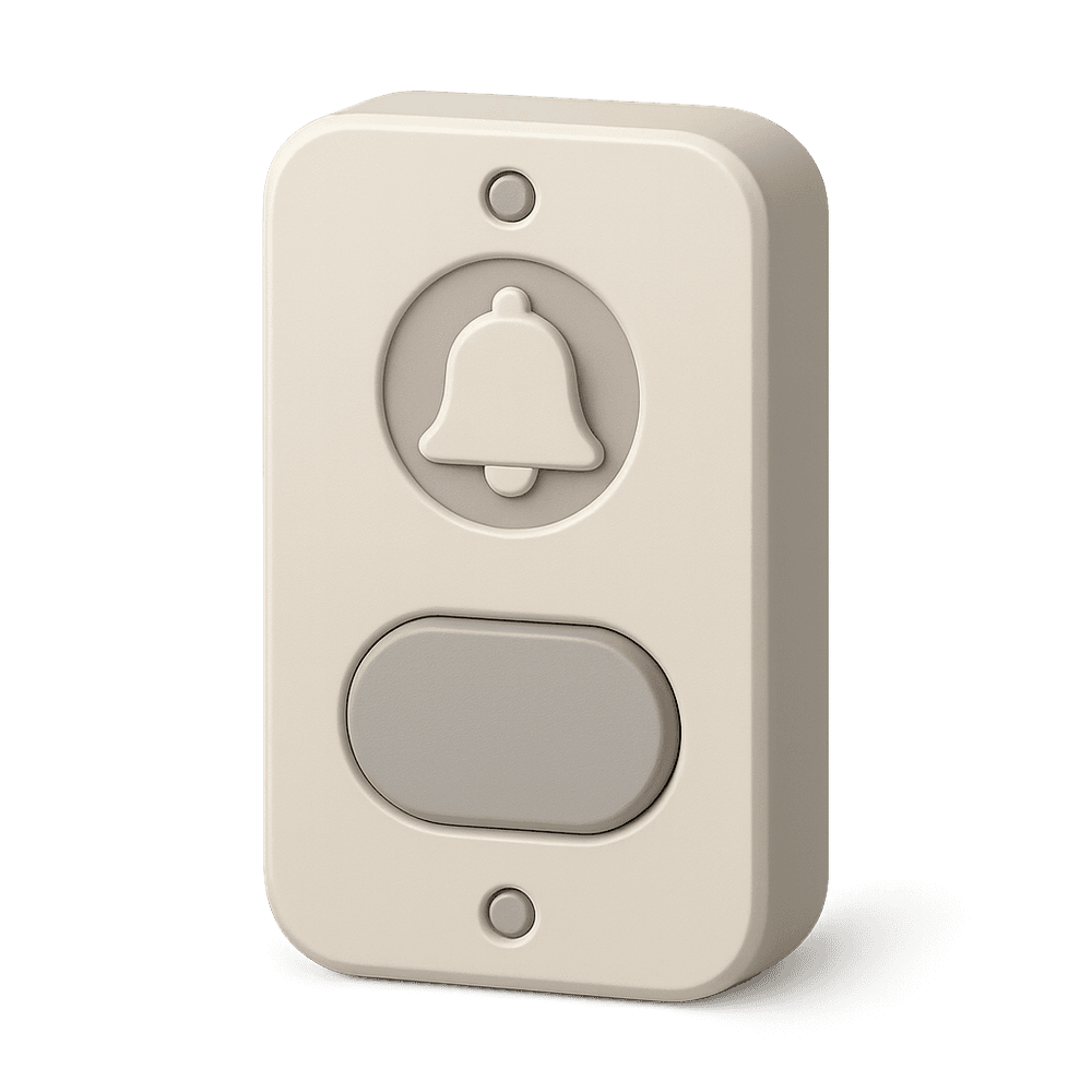 A doorbell is a signaling device typically placed near a door to a building's entrance. When pressed, it alerts those inside to the presence of a visitor, usually by emitting a chime or ring. Modern doorbells may include video or intercom features.