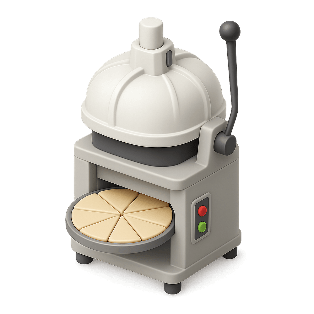 A dough divider is a specialized tool or machine used in bakeries and kitchens to evenly portion and cut dough into equal pieces, ensuring consistency in size and weight for bread, rolls, or pastries. It increases efficiency and accuracy in large-scale baking operations.