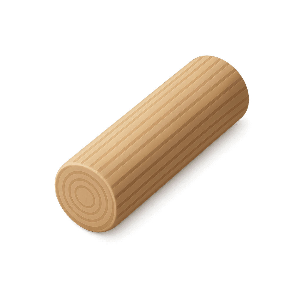 A dowel is a short, cylindrical rod, usually made of wood, plastic, or metal, commonly used in furniture making, crafts, and construction to reinforce joints or as a support peg.