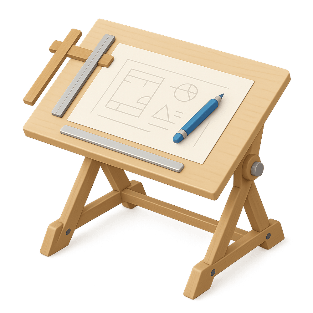 A drafting table is a specialized adjustable work surface designed for drawing, drafting, and technical illustration. Commonly used by architects, engineers, and artists, it provides a stable and ergonomic platform for precision work.