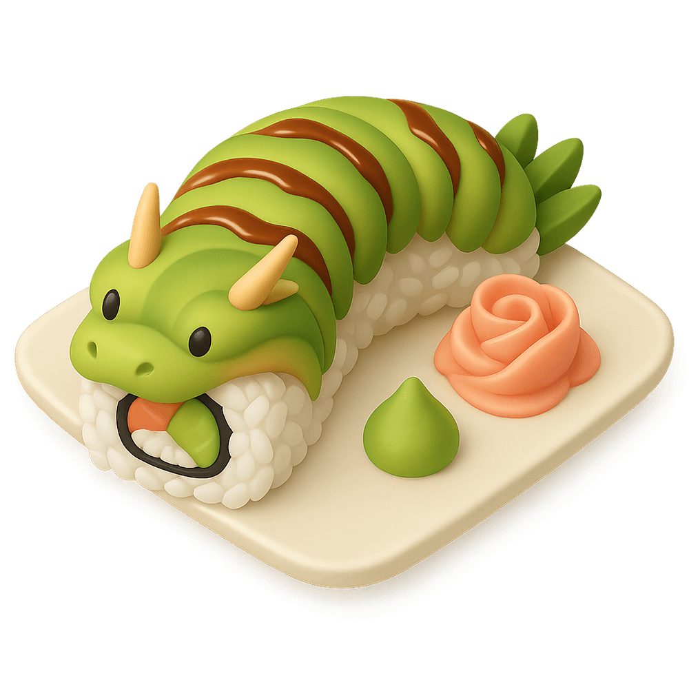 A Dragon Roll is a popular sushi roll featuring eel, cucumber, and avocado, often topped with thin avocado slices and drizzled with sweet eel sauce. It is known for its vibrant appearance and delicious combination of flavors.
