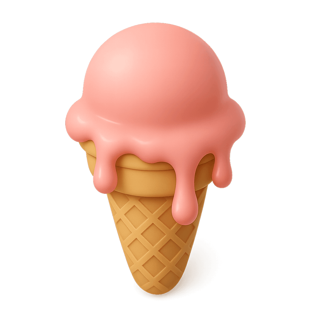 A classic ice cream cone with melting scoops, dripping down the sides—a sweet treat enjoyed on warm days, often leading to sticky fingers and happy smiles.