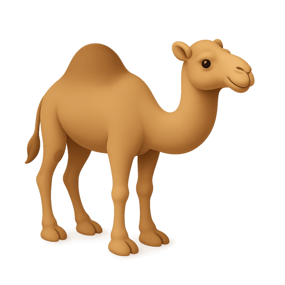 The dromedary camel is a large, single-humped mammal native to desert regions of the Middle East and North Africa. Known for its endurance and ability to survive long periods without water, it is commonly used as a pack animal and for transportation in arid environments.