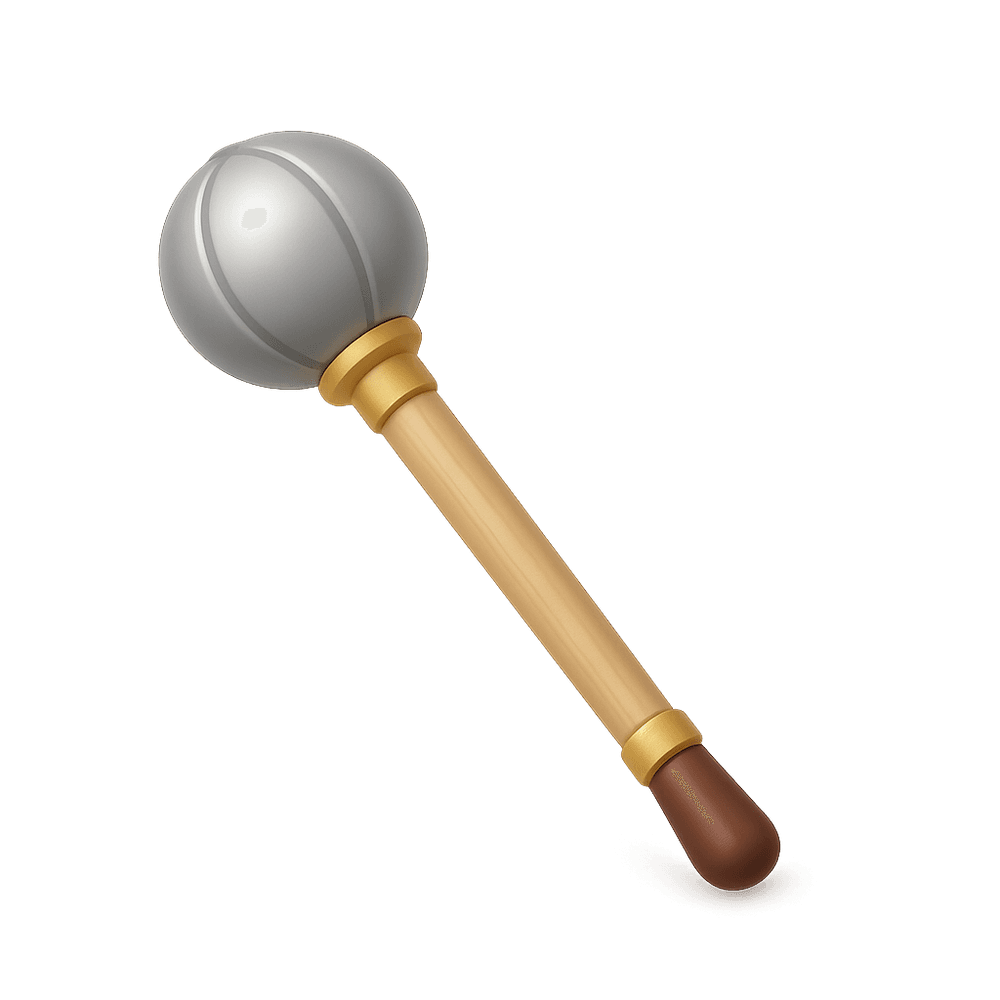 A Drum Major Baton is a decorative and functional staff used by the leader of a marching band or parade. It is twirled and used for signaling commands during performances and processions.