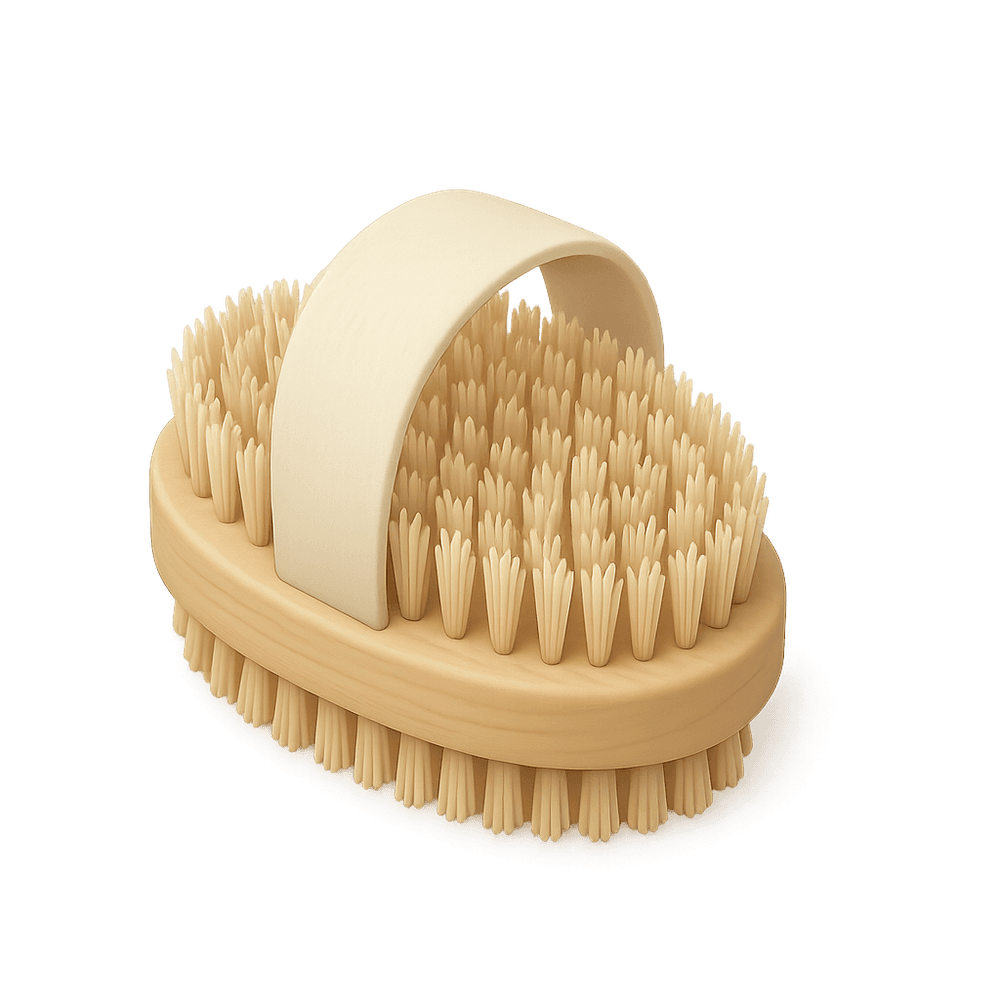 A dry brush is a firm-bristled brush used on dry skin to exfoliate, stimulate circulation, and promote lymphatic drainage. Commonly used as part of a self-care or wellness routine, it helps improve skin texture and overall health.