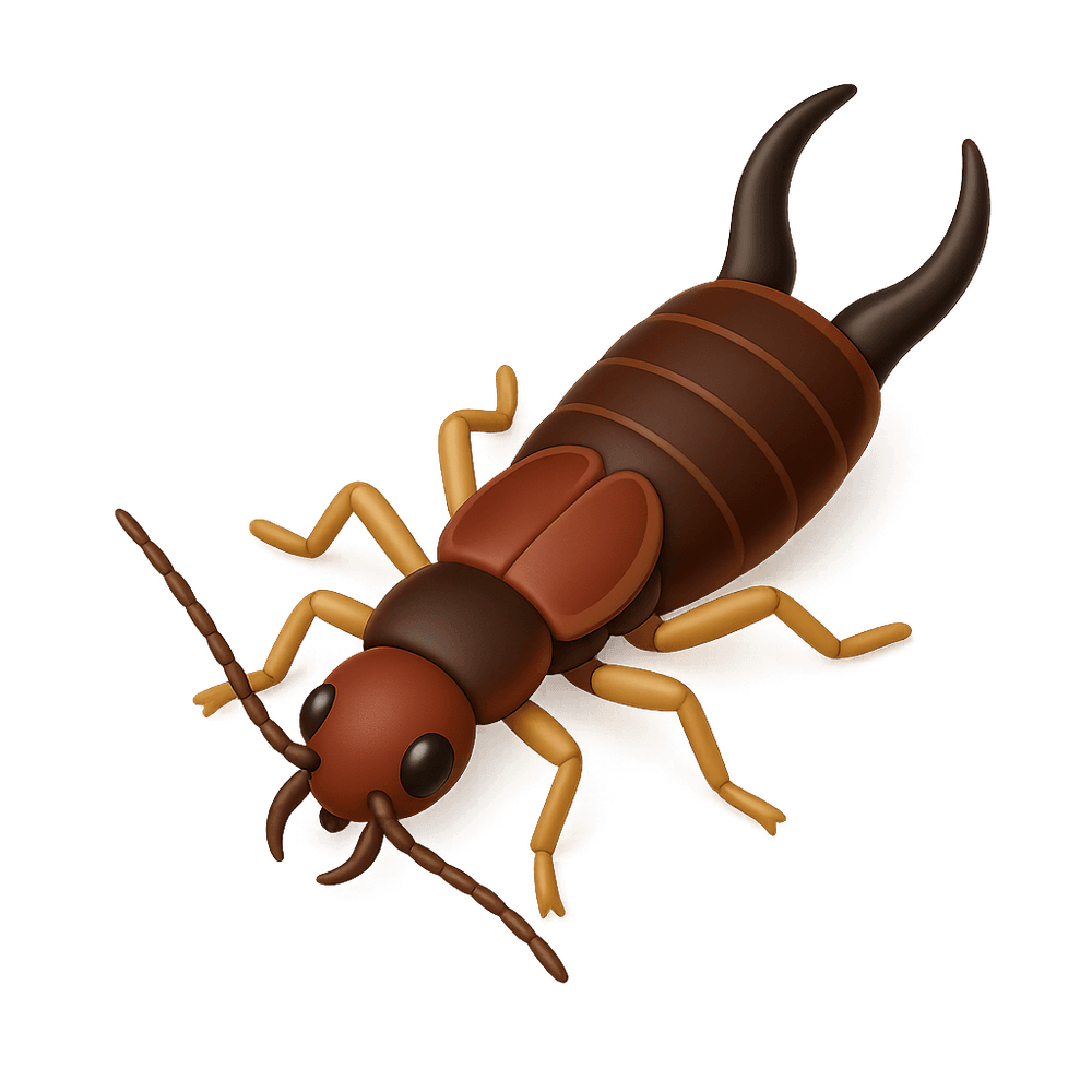 An earwig is a small, elongated insect known for its distinctive pincers at the end of its abdomen. Earwigs are nocturnal and often found in damp environments, feeding on plants and organic matter.