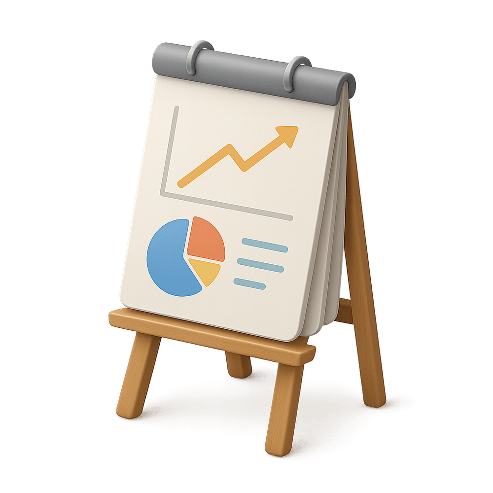 A portable stand with a writing surface, often used in offices or classrooms for presentations, brainstorming, or displaying information. It typically features a flip-over pad of paper for easy note-taking and sharing ideas.