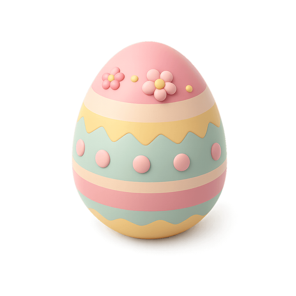 A decorative or edible egg, often brightly colored or patterned, traditionally associated with Easter celebrations. Easter eggs are commonly hidden for children to find during egg hunts, symbolizing new life and rebirth.
