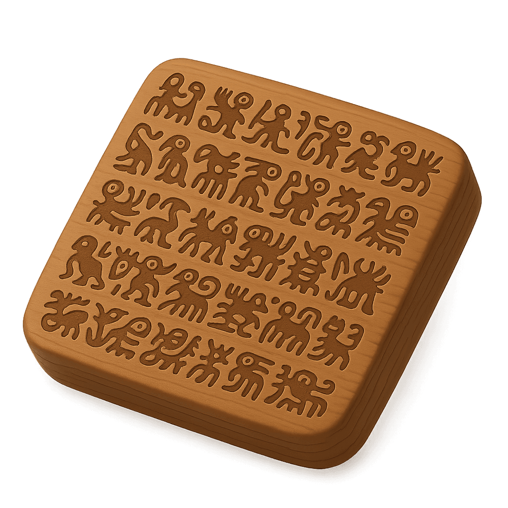 A wooden tablet from Easter Island inscribed with the mysterious Rongorongo script, believed to be an undeciphered system of glyphs used by the Rapa Nui people. The tablet is a rare artifact representing the island's unique written tradition and cultural heritage.