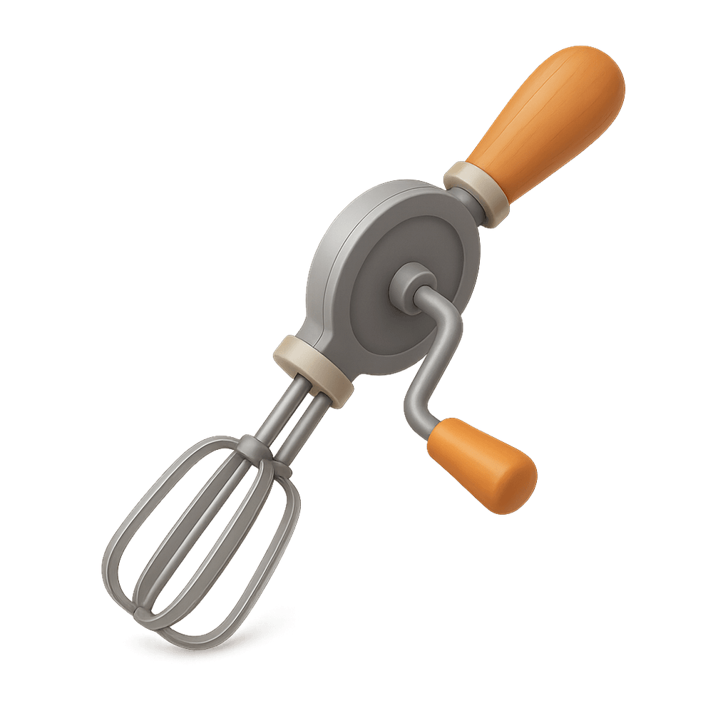 A handheld kitchen tool used to quickly and efficiently beat eggs or mix ingredients. It typically features rotating metal beaters operated by a crank or handle.