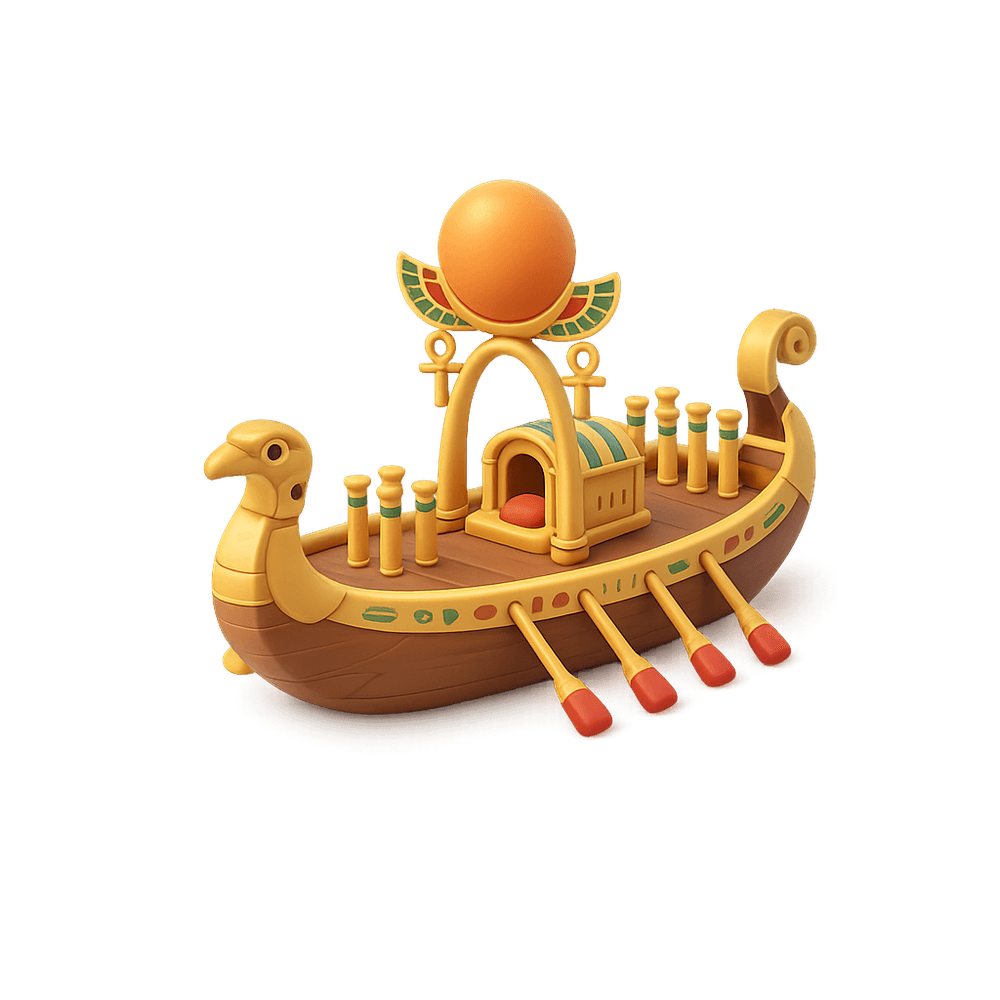 An Egyptian Sun Barge is a ceremonial boat used in ancient Egypt, believed to transport the sun god Ra across the sky during the day and through the underworld at night. These barges played a significant role in Egyptian mythology and funerary practices, symbolizing rebirth and the eternal journey of the soul.
