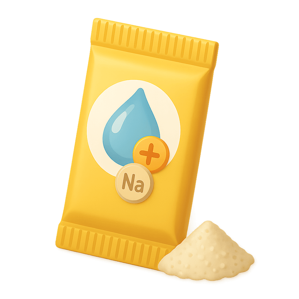 A single-serving packet containing a blend of electrolytes and minerals, designed to be mixed with water to help replenish hydration and support physical performance. Convenient for on-the-go use, especially after exercise or during travel.