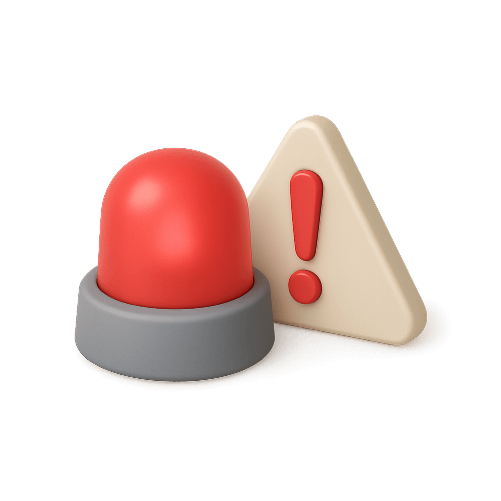 A symbol or interface element used to indicate urgent situations, hazards, or the need for immediate attention. Commonly found in public spaces, digital interfaces, and signage to quickly communicate emergency status or actions.