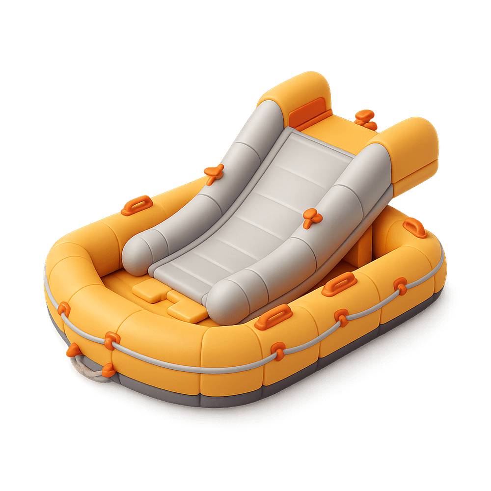 An emergency escape slide raft is an inflatable device used on aircraft to provide a quick and safe evacuation route for passengers and crew during emergencies. It doubles as a life raft if the evacuation occurs over water.