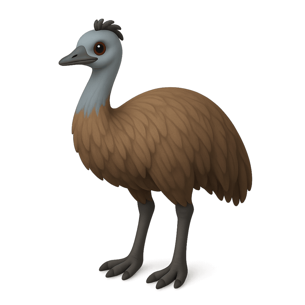 The emu is a large, flightless bird native to Australia. It is the second-largest living bird by height, known for its long legs, fast running speed, and distinctive brown feathers. Emus are omnivorous and play an important role in their ecosystem.