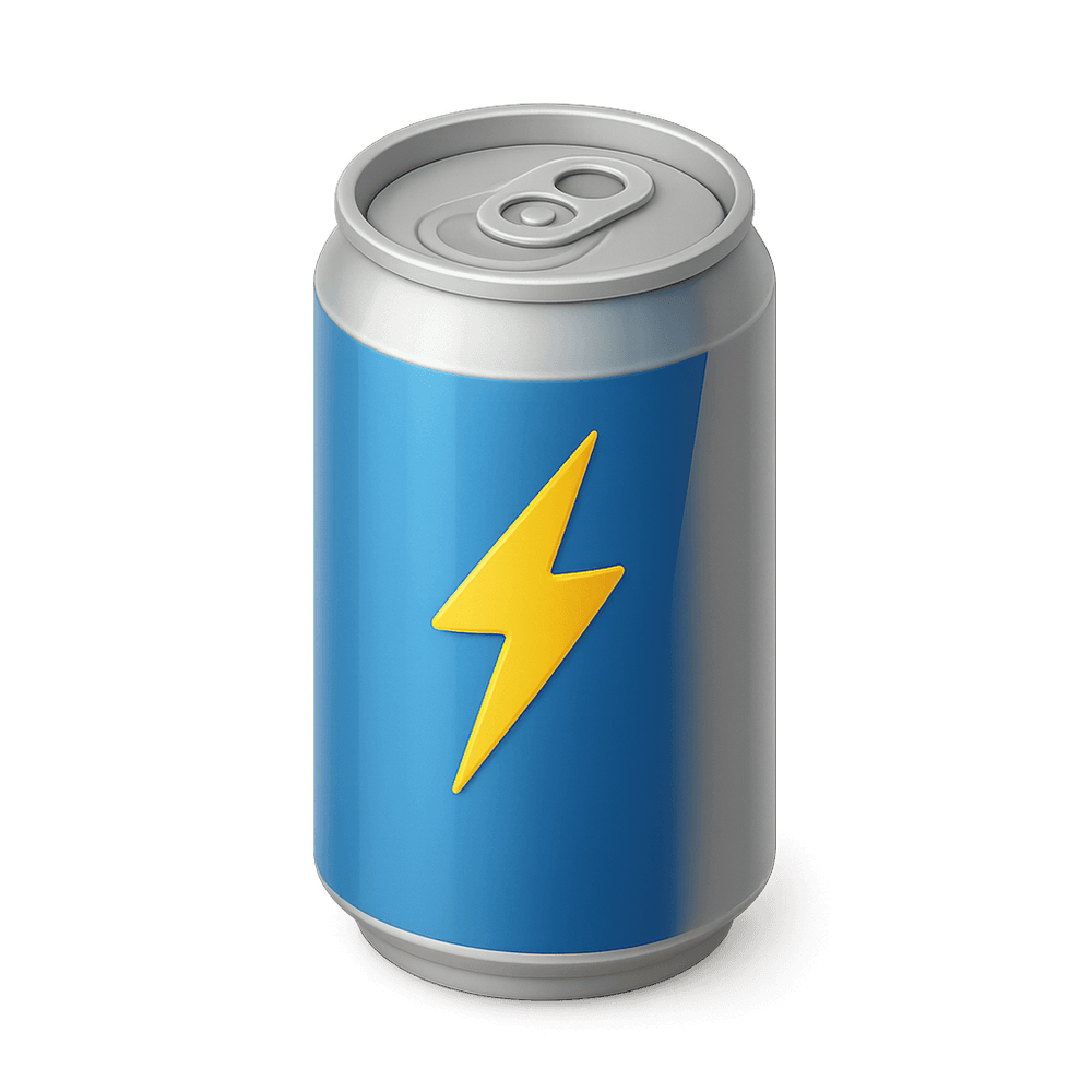 A carbonated beverage designed to boost energy and alertness, often containing caffeine, sugar, and other stimulants. Popular among people seeking a quick energy boost.