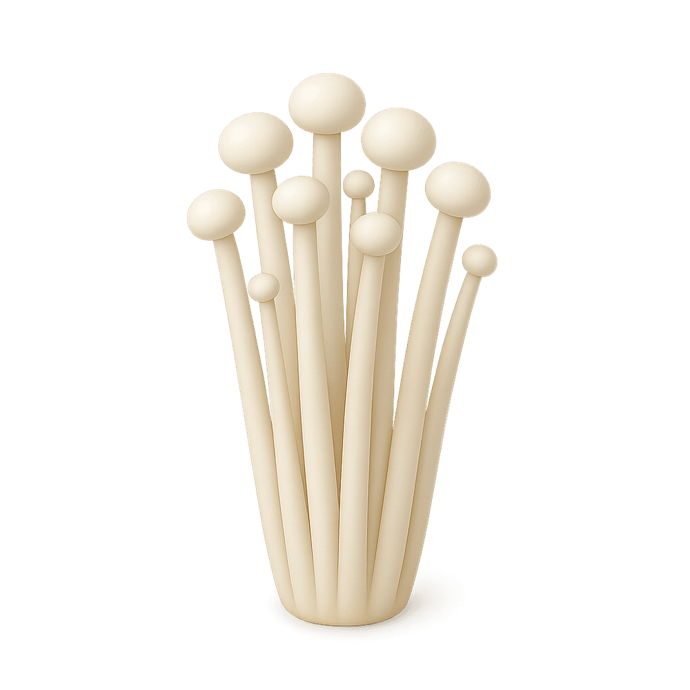 Enoki mushrooms are long, thin white mushrooms commonly used in East Asian cuisine. They have a mild, slightly crunchy texture and are often added to soups, salads, and stir-fries.