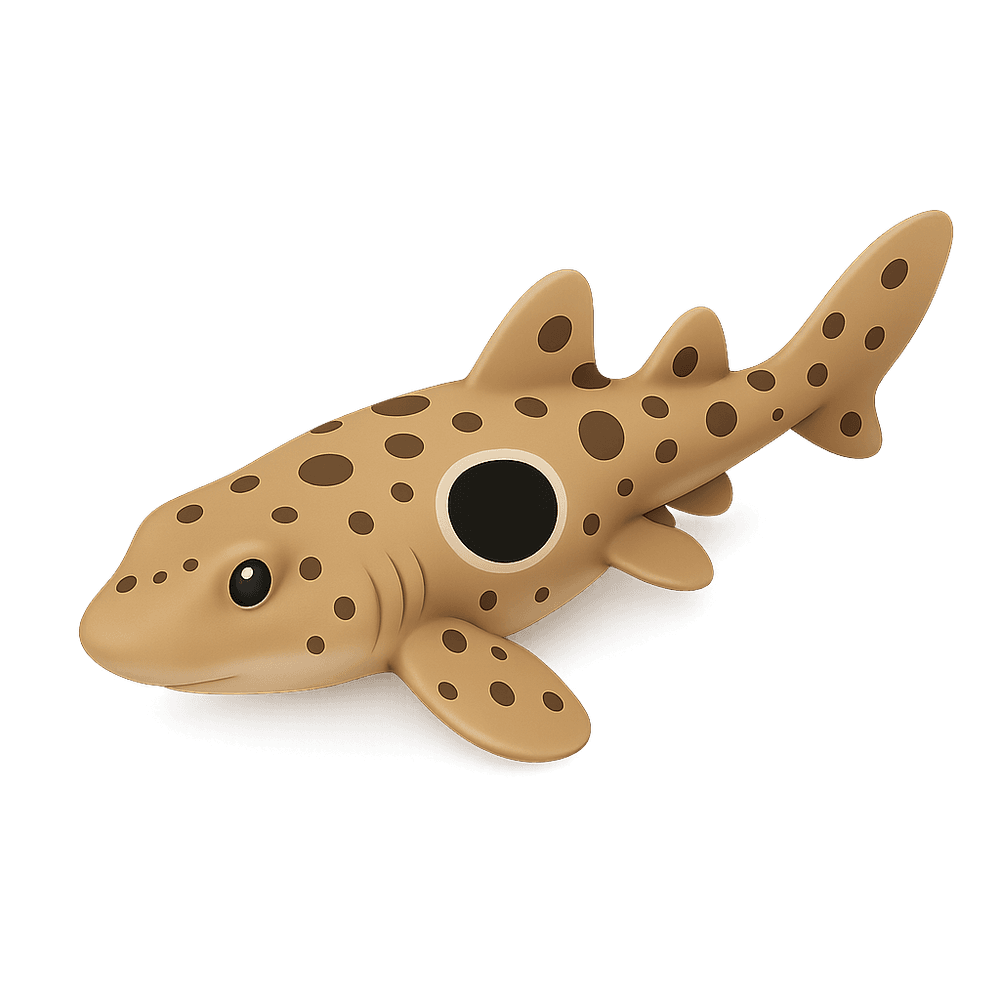 The Epaulette Shark is a small, nocturnal shark native to the shallow coral reefs of Australia and New Guinea. Known for its unique ability to 'walk' on its fins across the sea floor and even survive out of water for short periods, it is easily recognized by the distinctive spots on its body that resemble military epaulettes.