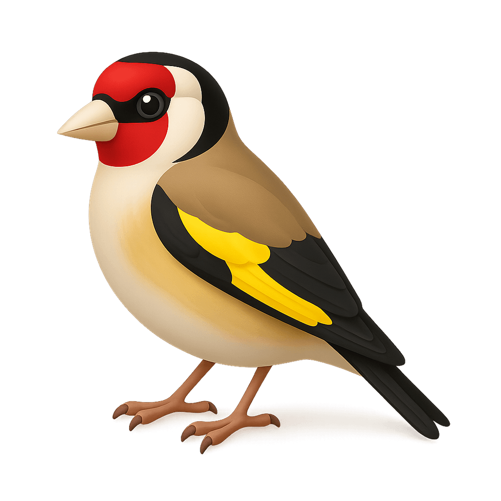 The European Goldfinch is a small, colorful songbird native to Europe, known for its bright red face, black-and-white head, and yellow wing patches. It is often found in gardens, woodlands, and open countryside, and is admired for its melodic song and striking appearance.