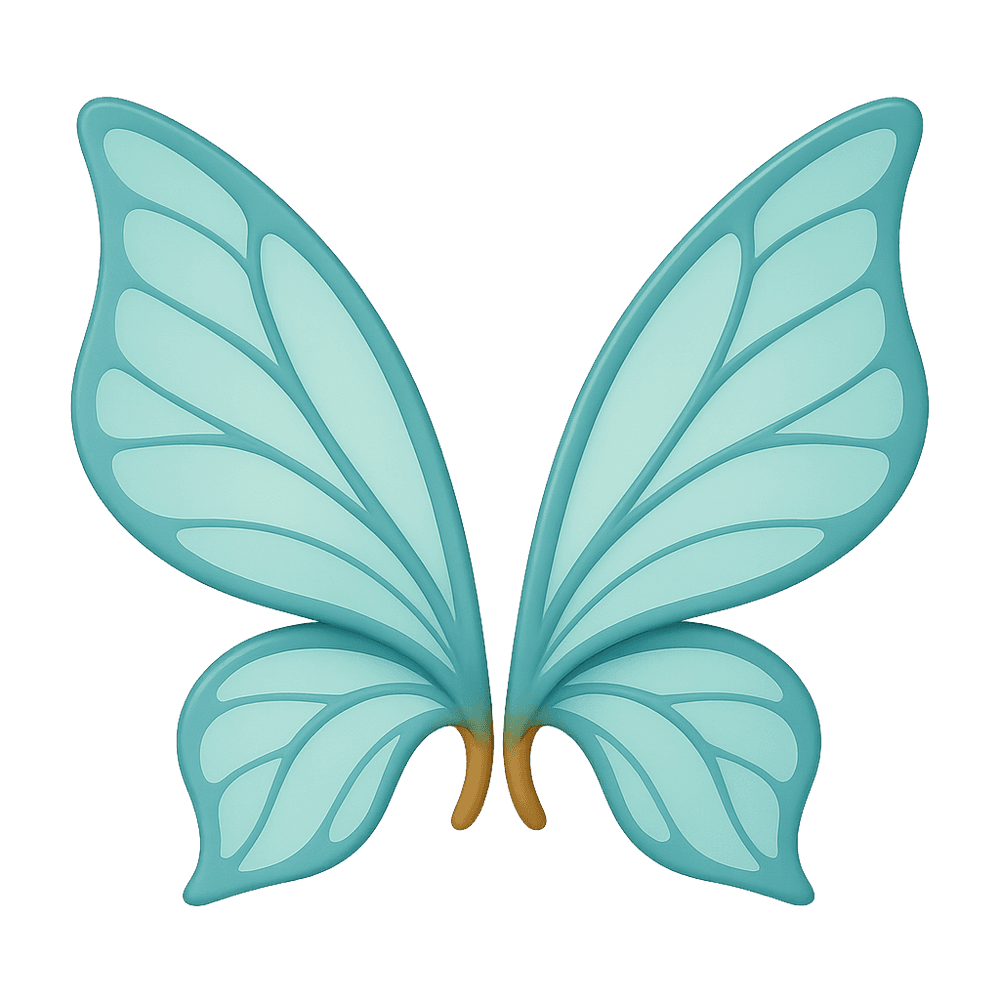 A delicate, translucent wing belonging to a fairy, often depicted in folklore and fantasy tales. Fairy wings are known for their ethereal beauty, shimmering colors, and magical properties, symbolizing flight, freedom, and enchantment.