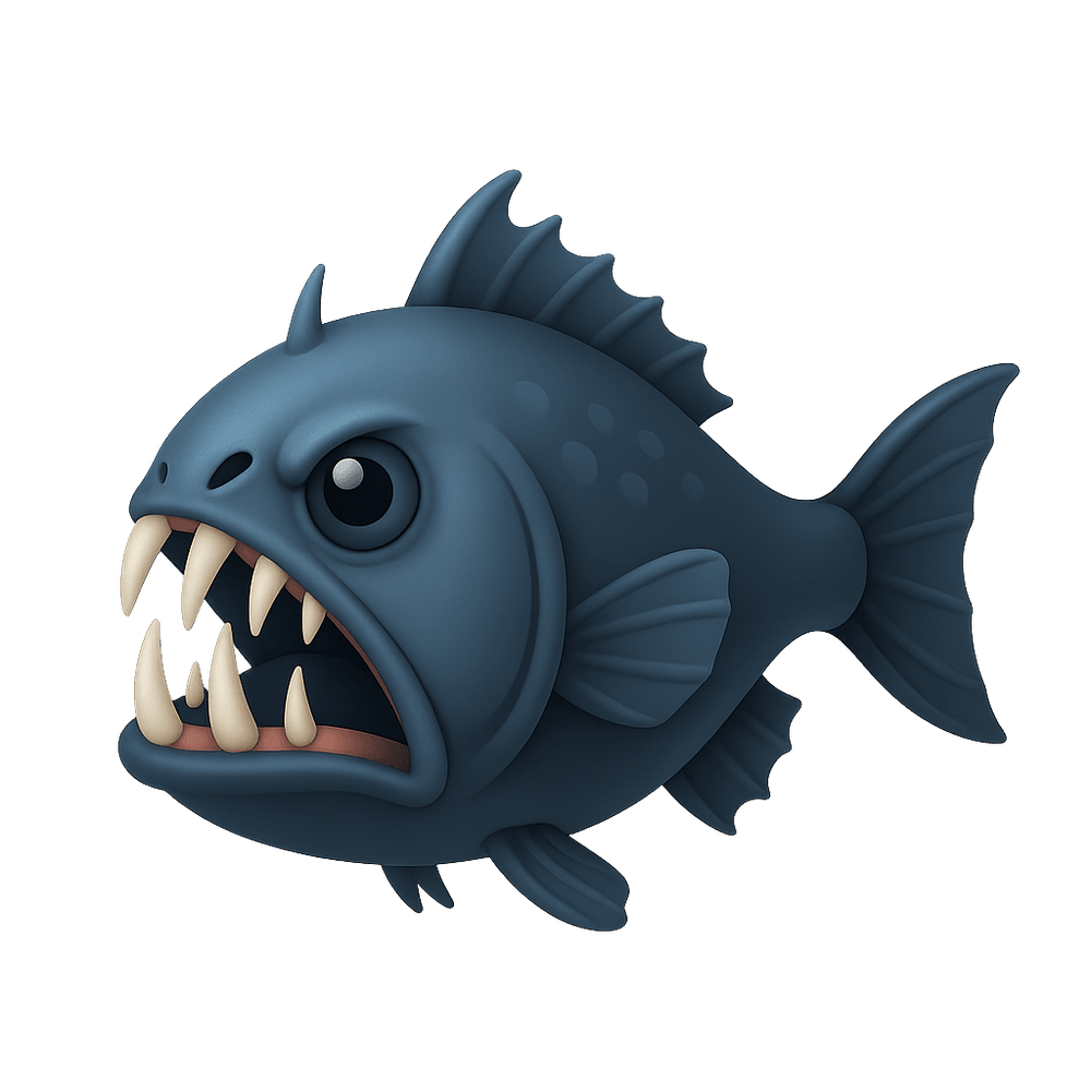 The fangtooth fish is a deep-sea predator known for its disproportionately large, sharp teeth and menacing appearance. Despite its fearsome look, it is relatively small and inhabits the dark depths of the ocean, where it hunts other fish and invertebrates.